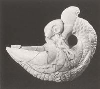 說 明: 胎體堅白,內(nèi)外施釉.造型極為生動.此器稱水盂或水滴,一說是摩羯形燈.