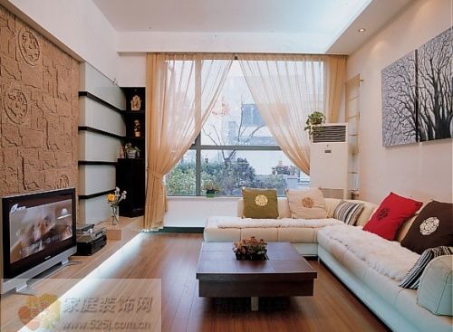 我在設(shè)計(jì)該個案前除了和業(yè)主做充分交流外,還對原有房型結(jié)構(gòu)做了功能上的優(yōu)化。這是一套三層的聯(lián)體別墅,業(yè)主為頗有傳統(tǒng)文化修養(yǎng)的儒商,因此設(shè)計(jì)風(fēng)格定位自然為現(xiàn)代中式。一樓門廳過道原設(shè)計(jì)為兩層挑高,這樣一來既加大了矛盾(會顯得過道、門廳過于狹窄),又不節(jié)能。我把過道和門廳上方挑空的空間搭建成為家庭廳,從而一舉三得。門廳右側(cè)原設(shè)計(jì)為裝飾柱,我把它以具有功能意義的鞋柜衣帽柜取代之,并運(yùn)用干竹桿簾營造出與下沉式客廳的半通透效果,而此干竹竿的運(yùn)用一直延續(xù)到樓梯的欄桿,中國古代文人之:“寧可食無肉,不可居無竹”的理念~~。