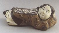 說 明: 瓷胎細(xì)膩堅(jiān)硬,白釉彩繪.整體為一臥女形象,其神態(tài)自然悠閑,造型優(yōu)美大方.色調(diào)對(duì)比鮮明,具有濃郁的民間氣息.