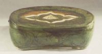 說 明: 通體施綠釉,黑彩線刻.紋飾線條流暢清晰,在宋代瓷枕中屬大型者.