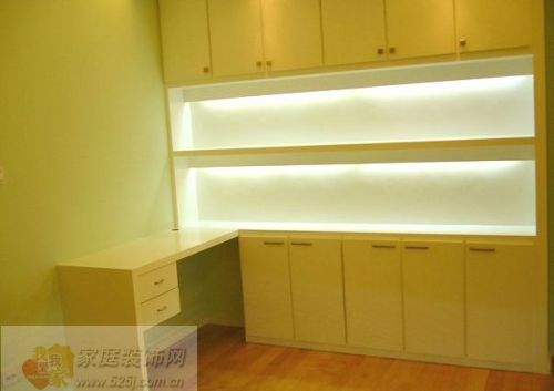 書桌上方裝置了射燈 射燈下安排了油畫或者其他藝術(shù)壁畫,客人進(jìn)客廳,首先看到的具有書香氣的環(huán)境和藝術(shù)氛圍,受感體驗(yàn)立即加分。