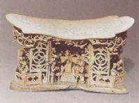 說 明: 通體施青白釉,釉色瑩潤,底露胎,胎微帶青灰色.此枕共塑造仙鬼像十八尊,工藝精巧,形象各異.為元瓷神品,極少傳世.