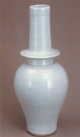 說 明: 此種瓶式始燒于南宋,但多屬小器,如此高達48.2厘米的大瓶屬少見.通體青釉,呈色純正無疵,是元瓷的珍品.