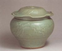 圖片名稱: 龍泉窯貼花龍鳳紋蓋罐