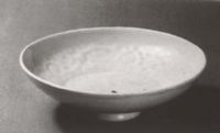說(shuō) 明: 胎質(zhì)潔白細(xì)膩.施卵白釉,釉汁勻凈潤(rùn)厚.器內(nèi)壁飾纏枝菊紋.花及空隙間橫印陽(yáng)文"樞府"兩字.圖案精美,紋樣規(guī)整,繁而不亂.樞府瓷是元代景德鎮(zhèn)著名產(chǎn)品.