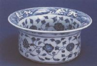 說(shuō) 明: 釉光滑細(xì)潤(rùn).蘇麻離青料繪飾.青花呈色濃艷,畫筆生動(dòng),為永樂(lè)時(shí)期的新造型,系受西亞文化影響而制.原為宮廷舊藏.