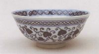 說 明: 胎薄質(zhì)細(xì),釉色白中閃青,釉薄光潤且勻.內(nèi)底花紋中的永樂年款,已模糊不清.造型秀麗,青花色澤濃艷,制作精致.曾為衍圣公府舊藏.