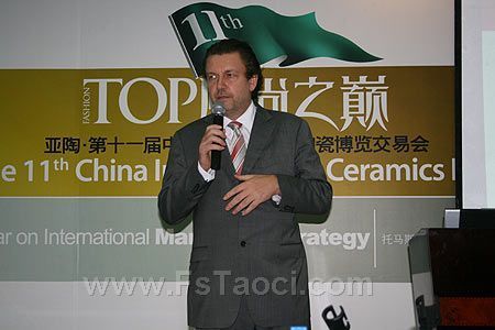 4月19日上午,佛山國際陶瓷博覽交易會的第二日,中國陶瓷城大會議室座無虛席,佛亞展覽公司總裁托馬斯先生正在這里進(jìn)行一場以陶瓷產(chǎn)品國際營銷為主題的講座。