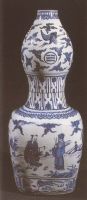 說 明: 通體青花紋飾,青花色調(diào)濃艷.明嘉靖帝迷信道教,葫蘆式器形也體現(xiàn)了道教的"天圓地方"之說.