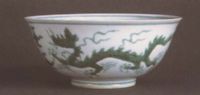 說(shuō) 明: 此器坯體劃刻紋飾,留出施彩部分,填綠彩,復(fù)入窯烘燒而成.白釉瑩潤(rùn)如玉,綠彩艷如翠竹,式樣美觀實(shí)用,是弘治瓷器的優(yōu)秀作品.
