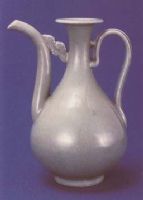 說 明: 壺身玉壺春樣式.執(zhí)壺造型元代已開始生產(chǎn),明代繼續(xù)燒制.此壺釉色青翠,胎體厚重,造型規(guī)矩古樸,足以代表明代龍泉窯的燒制水平.