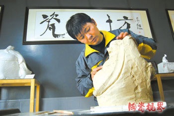在創(chuàng)作室,顏松柳的徒弟們都在認真地完善著眼前的作品,雖然看起來都很年輕,但那種認真和耐力卻并不是所有人都能做到。從外地前來學藝的蘇輝文告訴記者,他來到瓷言坊近兩年,跟隨師傅學習雕塑設計和創(chuàng)作。問及當初何以從師顏松柳,他說自己一直很喜歡瓷雕創(chuàng)作,后來聽別人說師傅胸懷開闊、瓷藝過人,教得又認真,能學到真本事,所以特意前來拜師。小蘇說,師傅除了教技藝外,還教會很多做人的道理。“師傅說,學好技藝前,要學會做人。”