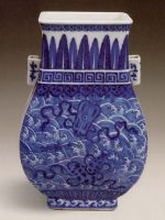 說 明: 頸部紋飾層次感強,回紋則顯得古樸莊重,器身海水紋氣勢宏大,且釉色穩(wěn)定、深厚.