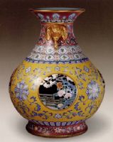 說 明: 這是一件既美觀又實用的陳設(shè)器,是乾隆年間唐英督理景德鎮(zhèn)御窯廠時,特為乾隆皇帝制作的新式玩賞瓷.據(jù)載,瓶上可活動的萬年甲子,寓意"循環(huán)如意,輻輳連綿".
