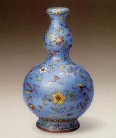 說 明: 葫蘆式瓶在清乾隆時(shí)曾風(fēng)靡一時(shí),除了各種單體的以外,還有以三個(gè)相同的葫蘆連為一體的.裝飾品種則有青花、粉彩、仿汝釉、仿官釉、天藍(lán)釉、粉青釉、茶葉末釉等.