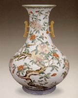 說 明: 胎質(zhì)細潤潔白,造型規(guī)整.紋樣嬌艷柔美,石榴寓有多子多孫的吉祥含義.