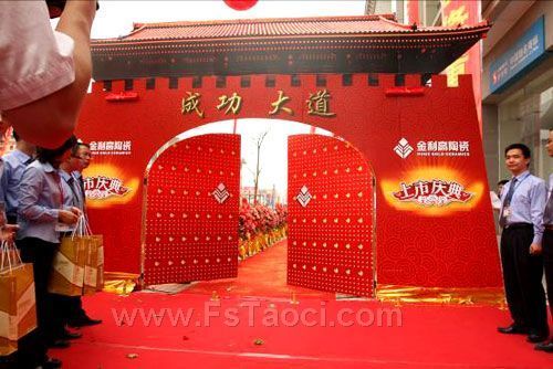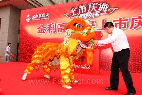 典禮從醒獅點(diǎn)睛開(kāi)始,共分為灌注香檳、開(kāi)啟成功、走成功大道三個(gè)章節(jié)。當(dāng)金色的香檳以高貴的姿態(tài)灌注進(jìn)金利高的logo中時(shí),金色的鑰匙顯現(xiàn),璀璨的煙花升騰,現(xiàn)場(chǎng)的熱情開(kāi)始點(diǎn)燃。金利高陶瓷向世人宣告他所開(kāi)創(chuàng)的金質(zhì)生活即將在全國(guó)上演。這是一個(gè)銜著金匙誕生的品牌,它所帶來(lái)的不僅是優(yōu)質(zhì)的產(chǎn)品,更是成功的財(cái)富模式。正如品牌總經(jīng)理胡放文先生所闡述的,站在薩米特集團(tuán)巨人的肩上成長(zhǎng)的金利高陶瓷,從一開(kāi)始就掌握了其他品牌所無(wú)法擁有的各種成功營(yíng)銷經(jīng)驗(yàn),金利高陶瓷,成功之門(mén)的開(kāi)啟者。在一片禮炮繽紛的時(shí)節(jié),金利高陶瓷帶領(lǐng)著眾多的經(jīng)銷商共同走上了成功的大道。觀者沸騰,經(jīng)銷商沸騰,所有的嘉賓沸騰,金利高陶瓷在隆重祥和的氛圍中勝利開(kāi)業(yè)。