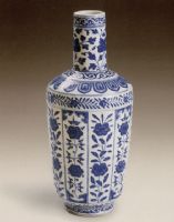 說(shuō) 明: 此瓶青花呈色沉著均勻.系清代傳統(tǒng)樣式,同類制品始見于雍正朝,乾隆朝也為較多制作.