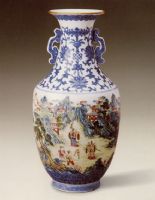 圖片名稱: 粉彩山水圖青花雙耳瓶