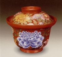 說 明: 紫紅色砂泥胎,蓋造型亦如淺碗.琺瑯彩花紋滿密,色彩燦爛,具有清初工筆花卉的立體效果.