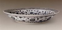 說 明: 此盤反映出洪武時期的釉里紅色調(diào)普遍較為灰淡,而完全紅潤的制作則十分少見.