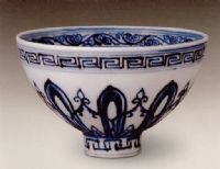 說 明: 此碗以"蘇麻離青"料繪畫,呈色濃艷.具有永樂時期器物小巧秀美,胎薄體輕的特征.