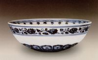 說(shuō) 明: 永樂(lè)時(shí)期臥足小碗,造型別致精巧,紋飾圖案化效果較強(qiáng),青花有暈散,結(jié)晶斑較明顯,釉質(zhì)滋潤(rùn),是永樂(lè)青花瓷器中有代表性的作品.