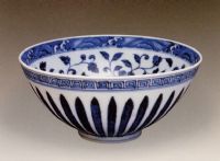 說 明: 此碗胎質(zhì)細白,白釉泛青.紋飾絢麗明快.