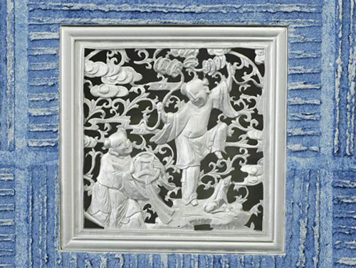 客廳為了突顯個現(xiàn)代化的中式復古感,業(yè)主把細節(jié)處考慮的很周到,這個是客廳背景花板,買來是那種紅木色的,后來是用油漆噴成銀色的了,裝修效果還不錯,既有個性又有復古的味道。