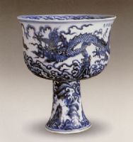 說 明: 碗造型端正,胎體厚重,青花色調(diào)濃艷,系以"蘇麻離青"料繪畫而成.紋飾生動,龍態(tài)有興云播雨之勢.