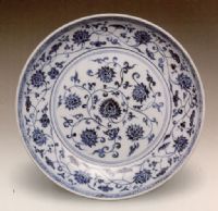 說 明: 這種帶有濃厚異族風(fēng)情的大盤,應(yīng)是當(dāng)時(shí)海外貿(mào)易發(fā)展的產(chǎn)物,是專為外銷阿拉伯人或?yàn)橘p賜而特制的產(chǎn)品,是永樂、宣德時(shí)期所獨(dú)有的器物造型.