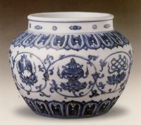 圖片名稱: 青花纏枝蓮?fù)邪藢毤y罐