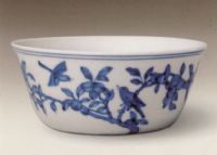 說 明: 成化時期臥足碗有兩種,一種碗壁斜直,另一種為弧形壁,但兩種臥足碗都不似永樂時期器壁圓潤.