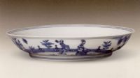 說 明: 此盤釉質(zhì)瑩潤,青花紋飾淡雅清晰,所繪人物紋比較罕見.成化人物紋直接繼承明永樂、宣德傳統(tǒng),人物紋多輔以樹石欄桿.