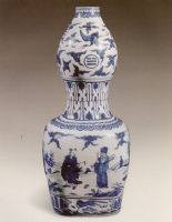 說 明: 此瓶青花色調(diào)濃艷.明嘉靖帝迷信道教,葫蘆式器型也體現(xiàn)了道家的"天圓地方"之說.