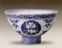 說(shuō) 明: 此碗構(gòu)圖新穎,描繪生動(dòng),嬰孩嬌憨之態(tài)惟妙惟肖.足內(nèi)青花雙長(zhǎng)方框內(nèi)楷書(shū)仿款"大明宣德年造".是隆慶青花瓷器的精美作品.