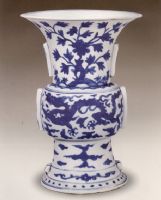 說 明: 此觚仿古銅器式樣燒造而成.胎體厚重,造型古樸雄渾.青花發(fā)色艷麗,紋飾布局合理,具有極高的藝術(shù)欣賞價(jià)值.