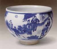 說(shuō) 明: 此碗器型規(guī)整,胎體較厚,圈足高深,砂底細(xì)潤(rùn),青花色澤鮮艷,繪畫工麗.此器有確切年款,故可作為鑒定崇禎瓷的標(biāo)準(zhǔn)器.