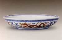 說 明: 此器系兩次燒成.工藝雖復(fù)雜,但彩色鮮艷,與青花釉里紅的風(fēng)格完全不同.