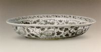 說 明: 為適應(yīng)阿拉伯民族的飲食習(xí)慣,這種大盤與花瓣式大盤一樣,在明代洪武時期往往成批生產(chǎn),成為當(dāng)時瓷器中的一種獨特現(xiàn)象.