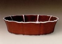 說 明: 此器通體施紅釉,釉面勻凈,釉色鮮艷.口沿與腹壁花瓣出筋處顯露潔白的胎色,與洗身的紅釉形成鮮明對比,相映生輝.雖無年款,確為宣德紅釉器的稀有珍品.