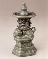 圖片名稱: 豆青釉雕獅燭臺(tái)