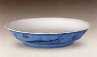 說 明: 孔雀綠釉青花瓷器始見于元代.此盤具有特殊的裝飾效果.