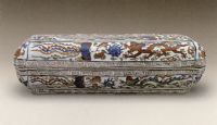 說 明: 此器胎質(zhì)細(xì)膩,呈灰白色,釉色白中閃青.制作精湛,在萬歷五彩文具中堪稱佳品.