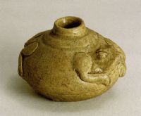 說 明: 這件水注年代較早,釉色淡青雅致,滋潤晶瑩.造型別致,蛙形生動.是越窯早期青瓷中的精品.