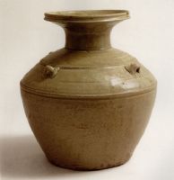 說 明: 大盤口,短頸,斜肩上有四個橫系,折腹,平底.
