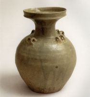 說 明: 此壺頸肩交接處附有八系,這在東晉時(shí)頗為少見.肩部刻劃覆蓮瓣紋,開創(chuàng)了此種紋飾的先河.