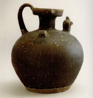 說 明: 根據(jù)龍把雞首壺的造型及黑釉的特點,該器為典型的東晉德清窯產(chǎn)品.