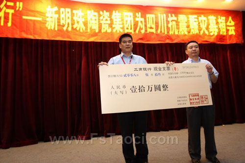 5月15日上午,建陶大型企業(yè)之一——廣東新明珠集團(tuán)總部多功能會議室不停地播放著四川地震災(zāi)情的短片,凄慘的場面不斷牽動新明珠人的心“同舟共濟(jì)、攜手同行”——新明珠大型募捐活動首場捐獻(xiàn)儀式就在這里拉開了帷幕。11時,一幅幅感人的場面旋即在新明珠集團(tuán)總部上演,董事長葉德林帶頭以支票形式個人捐款人民幣壹拾萬元,管理干部及員工們卻排隊走向捐款箱,氣氛非常熱烈,大家紛紛你五百、他兩百地紛紛慷慨解囊,為災(zāi)區(qū)人民獻(xiàn)上自己的一份愛心。