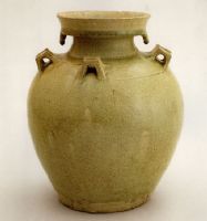 說 明: 施青釉,略呈黃綠色,開冰裂碎片.造型規(guī)整穩(wěn)重,是南朝青瓷中的標(biāo)準(zhǔn)器.